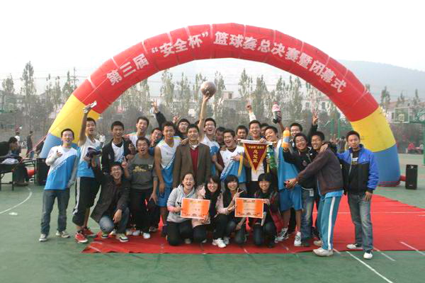 下半场比赛刚开始,安全09-3班就及时对进攻方案进行了调整,加重传球时的防守以防抢断。几个连续的投球使安全09-3班士气大增。比分随之进入胶着状态,你追我赶,扣人心弦。最后双方以39分平结束了下半场比赛。在最后的五分钟加时赛中,比赛异常激烈,双方都顶住了巨大的压力,奋力争抢,再次将比赛推向了顶峰。最终安全11-3班46:42力克安全09-3班夺得本次 “安全杯”篮球挑战赛的冠军。