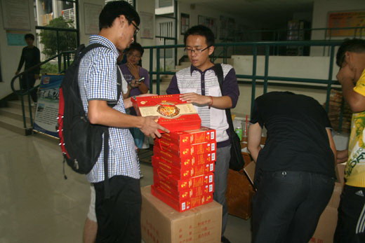 本次发放月饼以各班为单位,为保证本次发放月饼工作顺利有序进行,由10级辅导员李成刚老师负责月饼发放工作。院团委学生会部分学生干部热情的将月饼送到每个班,发放工作进行的稳中有序,李老师还代表全院老师为同学们送去了真挚的中秋祝福,令同学们倍感温暖。