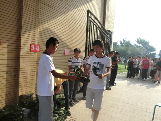 工作人员动作熟练,新生耐心等待、听从调度,发放现场有条不紊,仅用了不到半小时,军训服的发放工作就顺利完成。迷彩的外套,迷彩的帽子,几天后学校操场将会是一片迷彩的海洋。同学们热情奔放,相信这份热情将会帮助11级新生在接下来的军训中取得骄人的成绩。