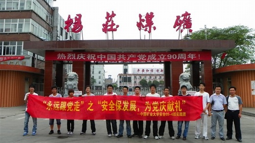 上午,实践团成员抵达杨庄煤矿,向矿工开展本次调查活动。矿工们纷纷积极地配合实践团的活动认真填写了调查问卷并详细认真的回答问卷上的问题。问到对该矿的安全设施满意度时,一位老矿工表示,近几年矿上引进很多全新的设备和安全管理理念后,煤矿事故发生率明显降低,安全设施满意度有较大提高。此外,借建党九十周年之际,实践团也向矿工们询问了共产党员在日常工作中的作用,矿工们纷纷表示矿工党员都很积极努力,刻苦攻坚,担负起了共产党员应尽的模范带头作用,为广大矿工在日常工作、学习过程中树立了榜样。有些矿工还向实践团讲述了矿上党员的先进事迹,在场实践团成员非常感动,心中涌现出无限的钦佩之意。