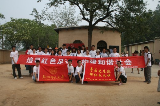 “寻历史足迹 铸红色永恒”实践团成员首先与杭州师大实践团全体师生共同参观了西柏坡纪念馆和中共中央驻西柏坡旧址。在参观学习中,大家被纪念馆中的真实的资料图片及珍贵的文物深深吸引,被西柏坡的革命精神所感动。参观七届二中全会旧址后,实践团成员与杭州师大学生党员代表在党旗下纷纷举起右拳庄严宣誓。“我志愿加入中国共产党,拥护党的纲领,遵守党的章程,履行党员义务,执行党的决定,严守党的秘密,对党忠诚,积极工作,为共产主义奋斗终身,随时为党和人民牺牲一切,永不叛党。”在铿锵有力的宣誓声中,充分的流露出学生党员们的奉献社会的觉悟和为人民服务的决心。