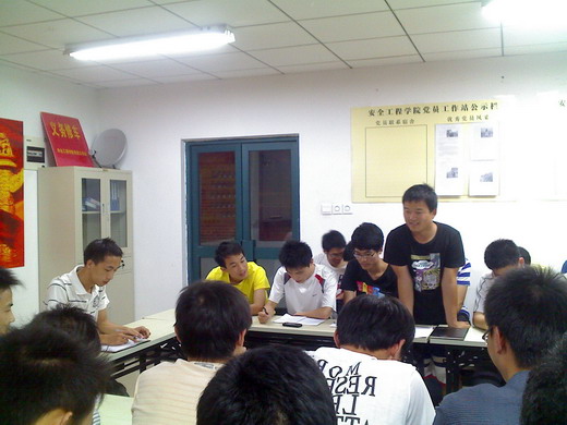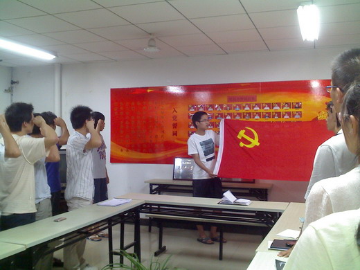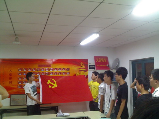 会议于晚九点正式开始。徐跃首先介绍了此次会议的流程。接着由张亚飞等八名发展对象分别介绍各自的对党性的认识、思想状况、生活学习等方面的状态。针对八名发展对象,党支部的各位同学对他们各方面进行了综合评价,提出了宝贵的意见,并对是否同意其发展成为预备党员发表意见。经过支部成员的充分讨论,与会党员进行举手表决,支部大会一致同意吸收张亚飞等8名发展对象为中国共产党预备党员。最后,在支部成员贾伟的带领下,全体学生党员进行了庄重的入党宣誓仪式。