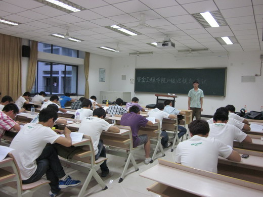 考试一开始,全体同学准备就绪,监考人员按次序为同学们分发试卷。同学们拿到试卷后不慌不忙,将题型大致浏览一遍后方才答题,努力做到落笔时胸有成竹。考试期间,考场秩序井然,气氛严肃,同学们纷纷认真做答,俨然已经把此次模拟考试当作正规考试来对待。考试结束后,同学们纷纷提出自己未解答的题目,并相互做了深入的探讨,共同交流题目解法以及考试心得,此次模拟测试解决了同学们不少的疑虑。考试历时近一个半小时后顺利结束。