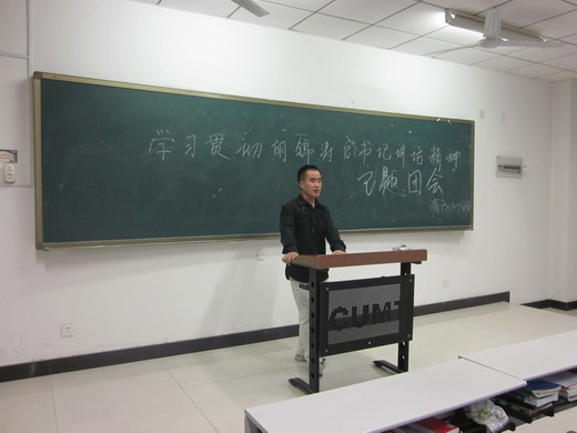 消防10-1班在教五C402举行学习贯彻胡锦涛总书记重要讲话精神主题团会,消防10-1班全体学生参加此次团会。10级辅导员李成刚老师出席本次团会。
