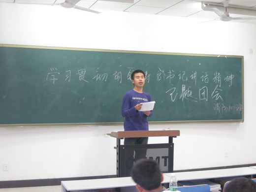会议刚开始,消防10-1班团支书向大家传达了胡锦涛总书记在清华百年校庆上的重要讲话内容:“四个必须”和“三点希望”,即“必须大力提升人才培养水平,必须大力增强科学研究能力,必须大力服务经济社会发展,必须大力推进文化传承创新;希望同学们把文化知识学习和思想品德修养紧密结合起来,希望同学们把创新思维和社会实践紧密结合起来,希望同学们把全面发展和个性发展紧密结合起来”。围绕胡锦涛总书记重要讲话的内容,同学们纷纷上台发言。针对学习文化与提升修养的结合,同学们谈到“我们一定不能放松对文化知识的学习,但同时我们可以通过利用课余时间读一些经典文化著作来提升自己的道德修养”。校优秀团员何选泽在谈到创新时说到“只有将创新附着于实践中,才创造更大的价值”。