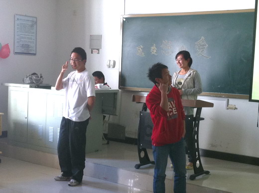 4月11日下午4点,由校学生工作处指导、管理新澳门六合彩预测 工商10-12班与新澳门六合彩预测 服务分队举办的“爱心班级”系列活动之携手“爱心班级”倡导感受爱的真谛活动在公教B506成功举行。新澳门六合彩预测 服务分队杜长宝及王鹏飞同学出席本次活动。