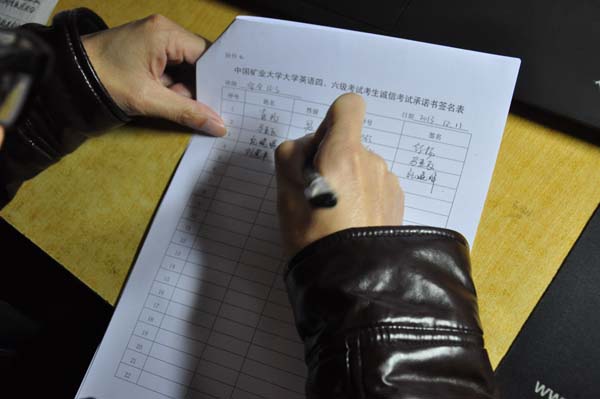 于12月12日组织大二、大三的全体考生签署了四六级诚信考试承诺书。