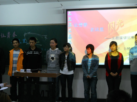 合办的“让青春在这里闪光”主题演讲比赛在教五A302、303隆重举办。比赛由唐山川、李丹萍同学主持。