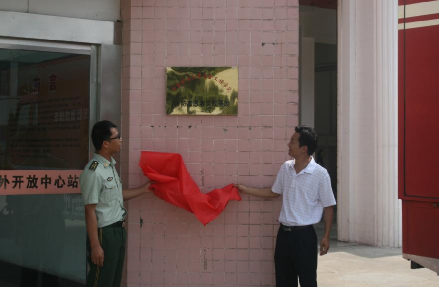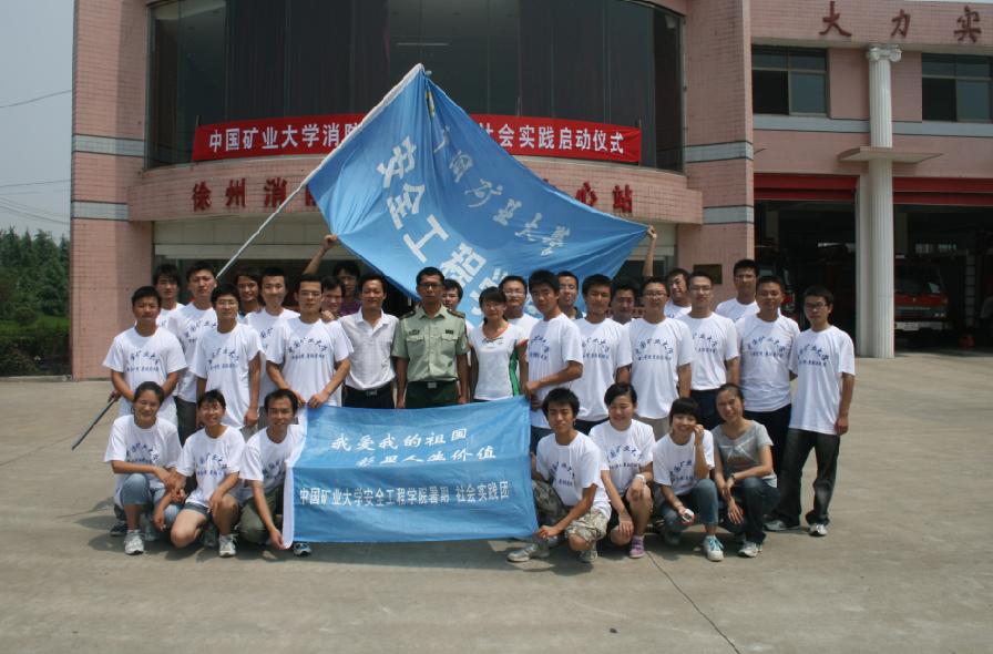 与在徐州市云龙区消防大队特勤二中队消防对外开放中心前举行了消防志愿者实践基地揭牌仪式暨中国矿业大学消防志愿者暑期社会实践活动启动仪式。出席本次活动的领导有:徐州市云龙区消防大队特勤二中队队长柳小强,新澳门六合彩预测