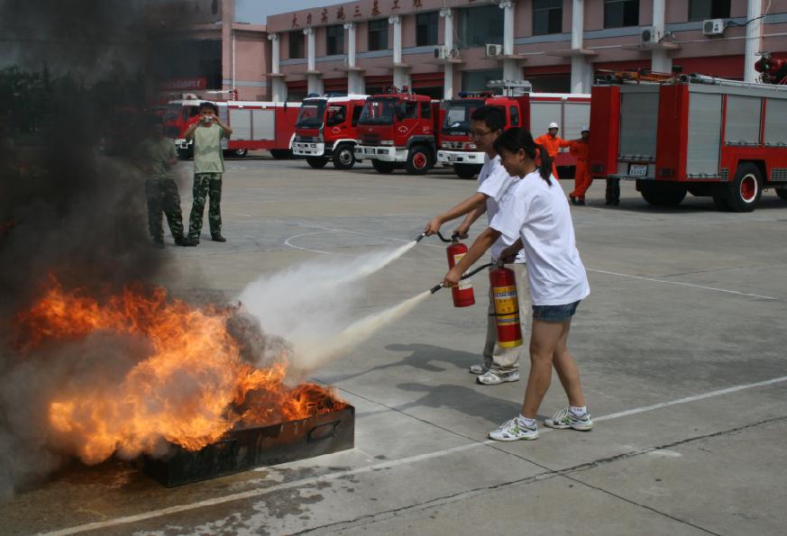 消防07-1班王存伍代表实践团全体成员发言,表达了全体实践服务队员“以科学发展观为指导,以人为本,认真做好消防知识的普及工作,以优质的服务良好的精神状态展示当代大学生的亮丽风采,为构筑和谐社会贡献自己的力量”的信心和决心。随后同学们迫不及待的在消防官兵的演习指导下进行最重要的环节――攀爬下降演习,灭火演习,救人演习等。随着消防官兵一个又一个动作标准流利地完成,同学们都忍不住报以热烈的掌声。紧接着,同学们一同参观了各种消防服装、器材,部分同学还在消防官兵的帮助下试穿了充满神秘的隔热服。消防队里专门模拟的火灾现场,各种火灾报警器,模拟逃生攀爬用的绳索都引起同学们强烈的好奇心,消防官兵们耐心详细地为同学们解决疑惑。
