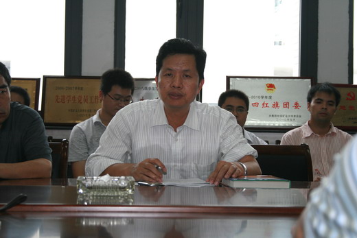 党委副书记钱雄在会议最后总结汇报2010级新生报到及入学教育开展情况。
