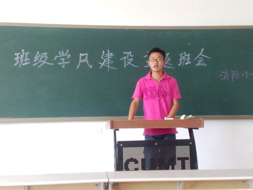 班会首先由消防09-1班团支书孙忠舰同学总结了本学期以来全班的学习状况,并向全班同学宣读了“消防09-1班09-10学年第二学期学风建设细则”。其中针对英语四级及期末备考把班级各成员分成若干个英语、高数小组以及“一帮一”互助小组,并提出了对各组的要求和奖惩制度,以保证备考复习活动有组织有针对性地进行。细则中同时也对同学们的日常生活提出了要求,诸如早起晨读、熄灯等,以保障同学们有足够的学习精力。随后,班主任汪磊老师与同学们共同分享了自己的备考经验,还向同学们提出了不少复习建议,希望同学们抓紧时间为英语四级冲刺,并及早投入到其他学科的复习中。最后,班长赵泽旭对进行总结并组织全班进行了讨论,本次主题班会圆满结束。