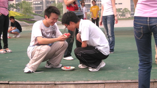 的团委学生会女生部联合举办的清凉一夏主题活动――“开心大胃王”比赛在镜湖畔举行。