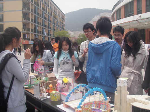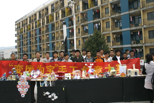 学生会生活部共同举办的“变废为宝”手工创意大赛于二食堂广场隆重举行。本次大赛采用全校师生自由投票的方式从近百余件参赛作品中评选出优秀作品,得到了广大同学的积极响应。