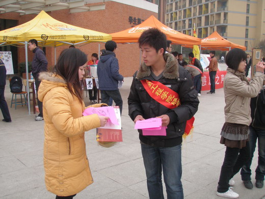 青协承办的消防知识普及活动在二食堂广场成功举办,院服务分队考核部部长李涛带领部分队员对消防知识进行了义务宣传。