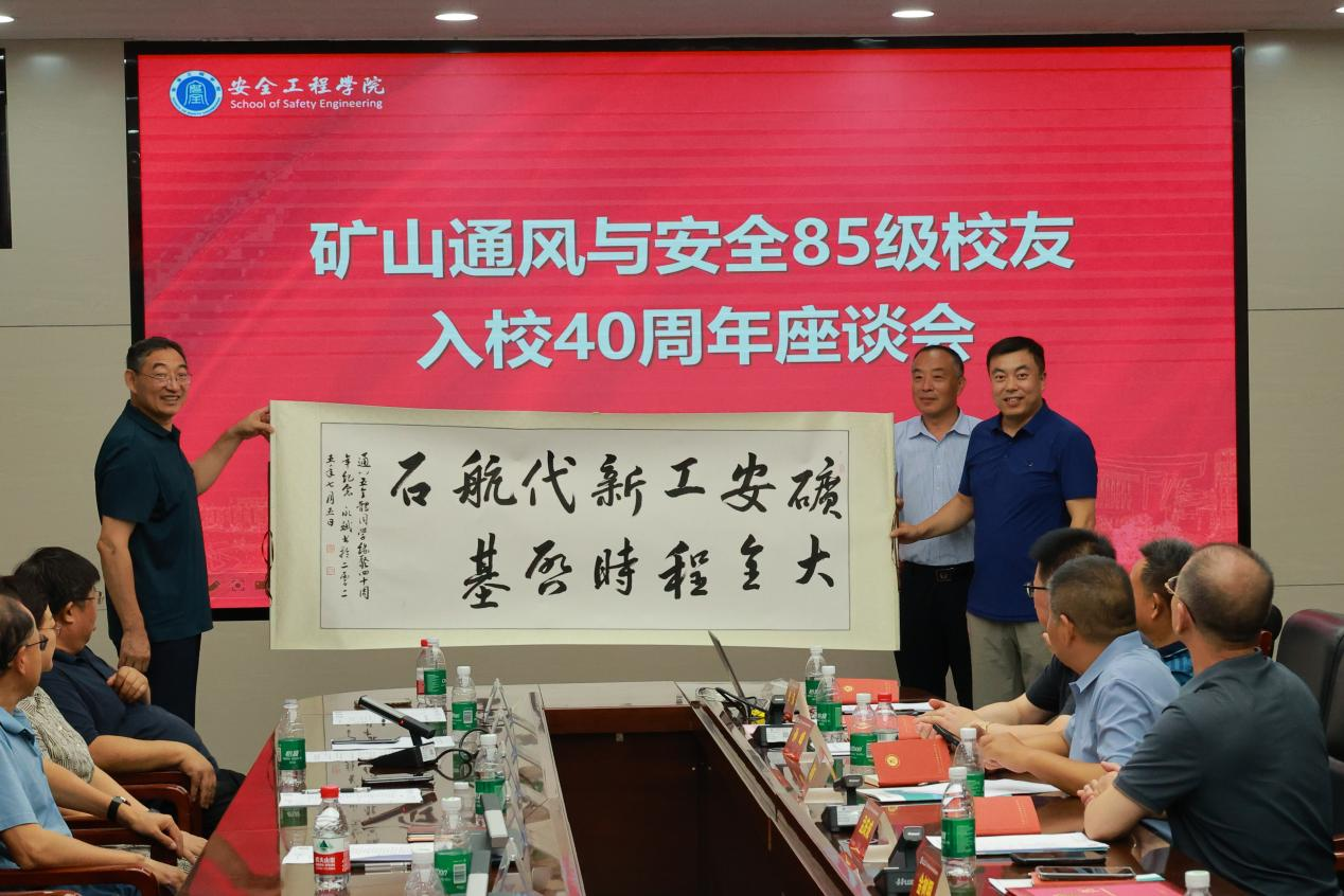 于矿业科学中心A412举办矿山通风与安全85级校友返校座谈会。对外合作与发展处处长钟晓东,院党委书记宋冰,院长翟成,副院长郭梅香,教师代表王德明教授、林柏泉教授、陈开岩教授、刘贞堂教授、张人伟副教授,矿山通风与安全85级校友参加了本次座谈会。座谈会由副院长郭梅香主持。