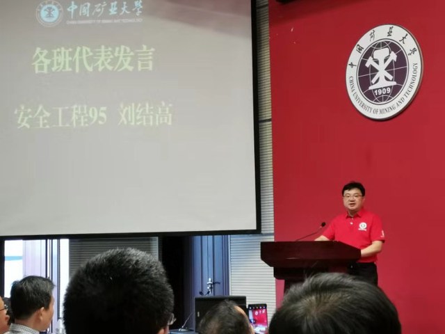 执行院长张绍良先后致辞,原采矿工程系95级辅导员徐黎华发表感言。测量95级杨敏代表筹备组介绍大会筹备情况。采矿95-1班朱若军、采矿95-2班王治清、安全95班刘结高、运输95班姚强、测量95班陈晓龙作为班级同学代表发言。会上还举行了捐赠仪式。