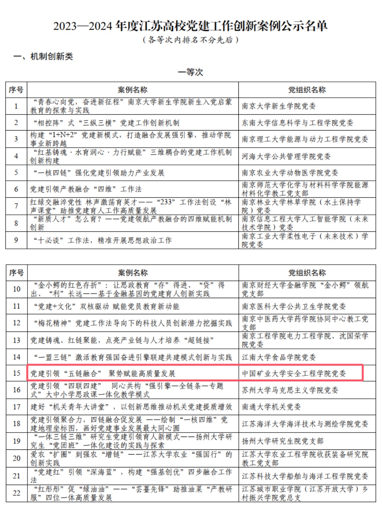 日前,江苏省委教育工委公布了2023—2024年度江苏高校党建工作创新案例名单,新澳门六合彩预测