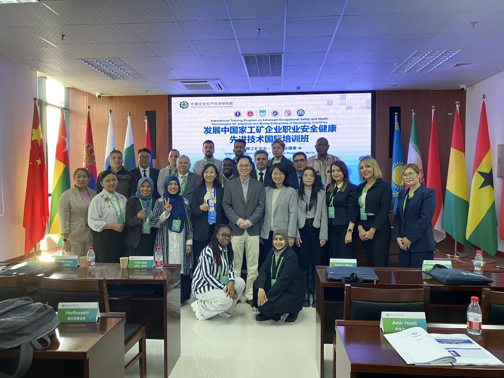 10月13日,由中华人民共和国科学技术部国际合作司主办,中国安全生产科学研究院承办的“发展中国家工矿企业职业安全健康先进技术国际培训班”在中国安科院密云安科基地举行开班仪式。来自加纳、几内亚、印度尼西亚、伊朗、哈萨克斯坦、蒙古国、巴基斯坦、俄罗斯、塞尔维亚、多哥10个国家的20名学员参加培训。我校作为协办单位受邀参加,新澳门六合彩预测