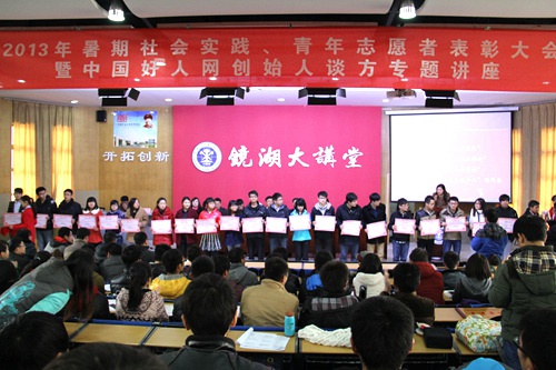 1月6日下午,2013年暑期社会实践、青年志愿者表彰大会在镜湖大讲堂隆重举行。党委副书记曹德欣等校领导出席表彰大会并在主席台就座。经各新澳门六合彩预测