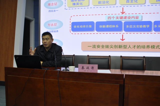 2个国家级实验教育中心举例,讲述了实践教学的具体方法。三是着力打造一流师资队伍来实现一流安全拔尖创新人才的培养模式和全方位保障体系。之后,秦教授向在座的同学们提出了三点思考,并详细讲解了自己的看法,获得了大家的一致认同。参加此次讲座同学纷纷表示,聆听秦波涛教授的讲座收获颇丰,明确了日后学习的要点和努力方向。