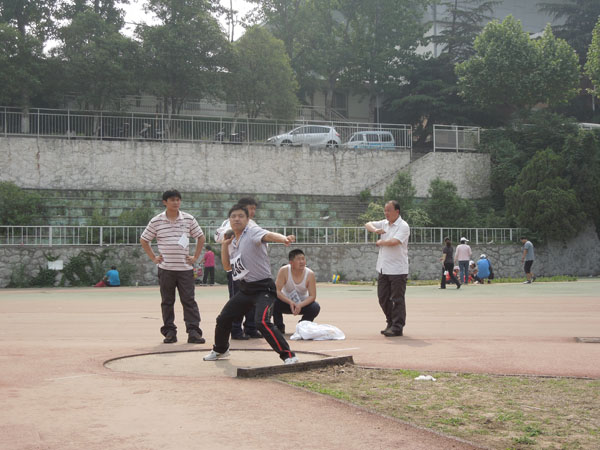 的戚绪尧老师仍不负众望,获得了男子甲组铅球第二名的好成绩。