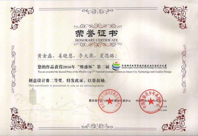 研究生黄金磊、姜晓慧、李大燕、夏思璐组成智联队,凭借作品“消防信息集成与智能应急救援平台”,从进入决赛的168支队伍中脱颖而出,荣获创意设计赛二等奖。同时,我校在本次比赛中表现突出,获得优秀组织奖。