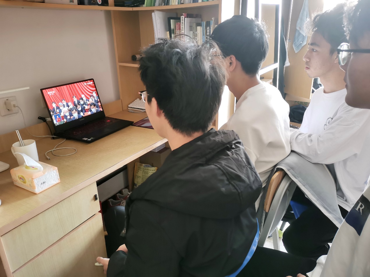 党委委员、党支部书记、各科室负责人,以及学生代表共计150余名师生党员集中收看直播,认真聆听学习了习近平总书记代表十九届中央委员会向大会作的报告并展开座谈交流。