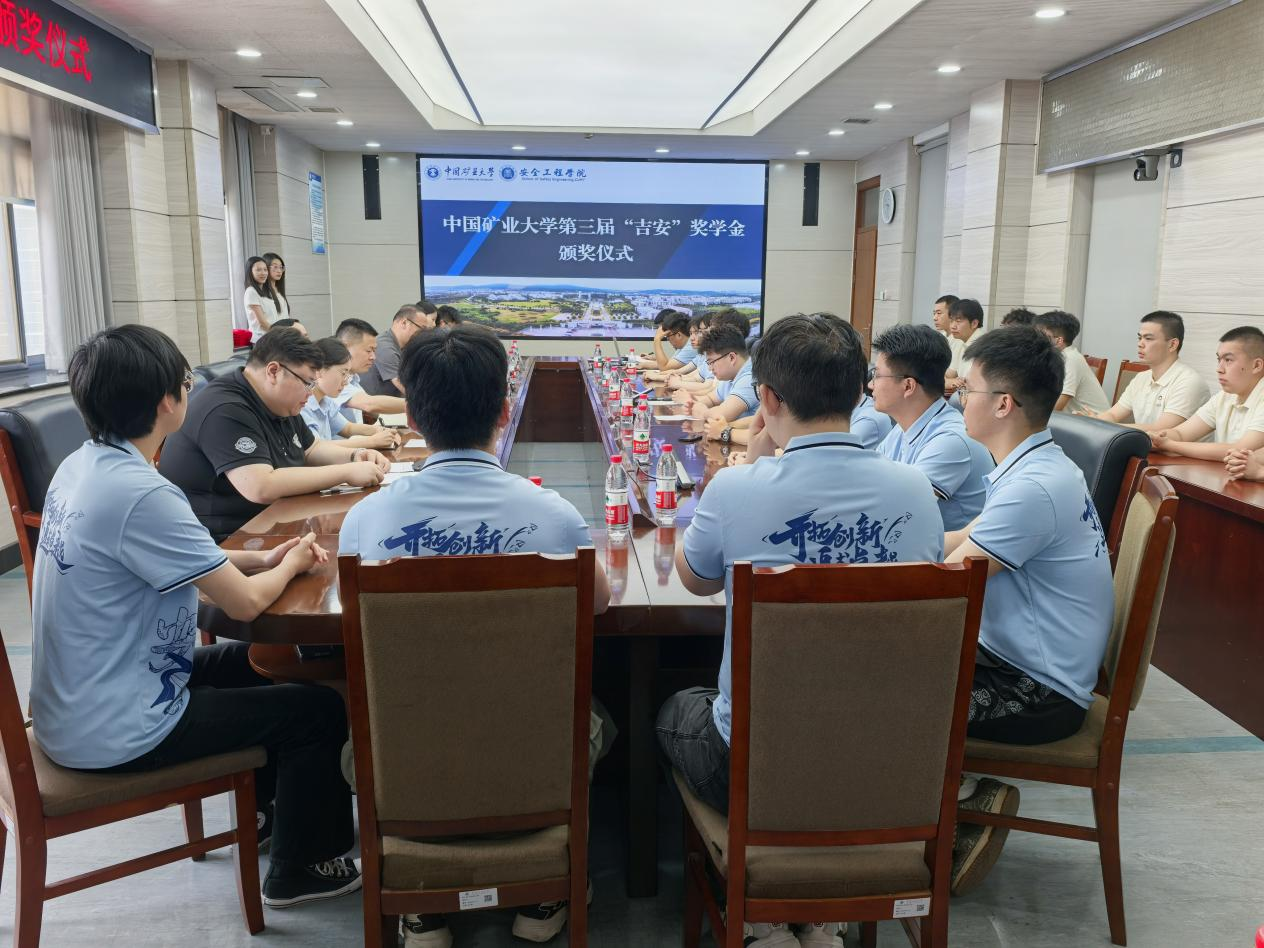 在矿业科学中心A412举办第三届“吉安”奖学金颁奖仪式。徐州吉安矿业科技有限公司总经理王士华、首席技术专家刘祥来徐、市场总监程方圆、品牌经理孙蕾,安全新澳门六合彩预测