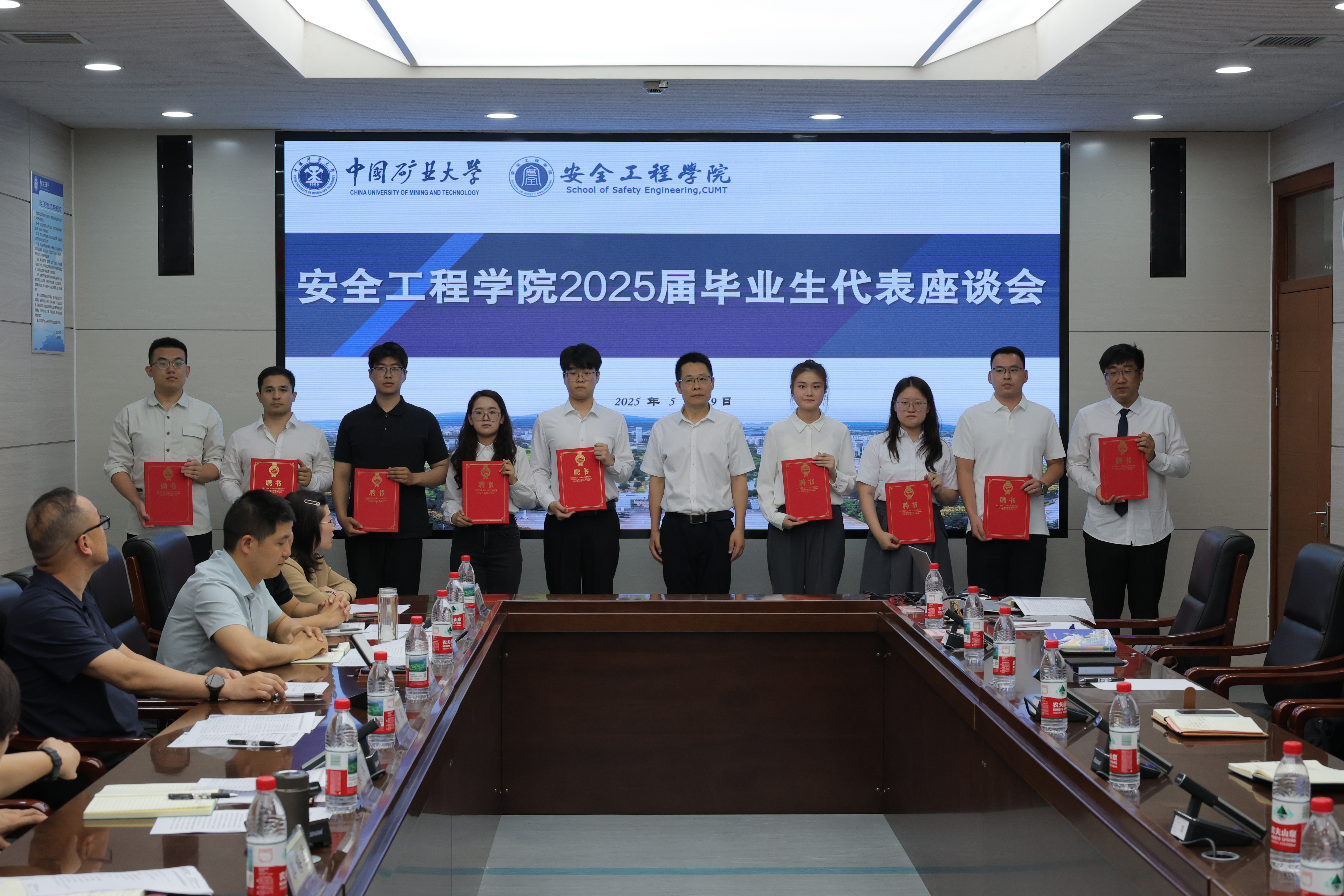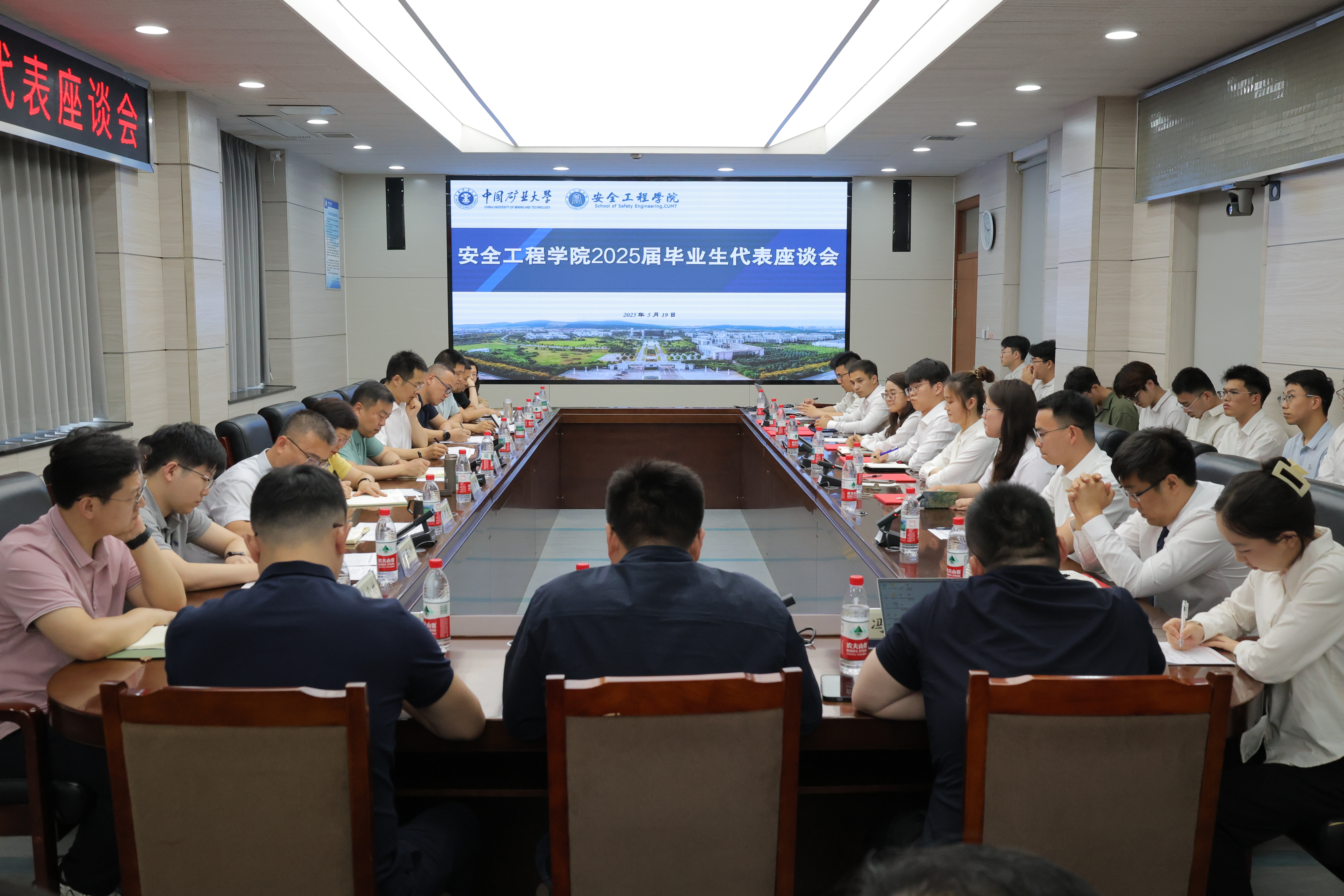 在矿业科学中心A412举行2025届毕业生代表座谈会。院党委书记宋冰,院长翟成,副院长郭梅香,院党委副书记邵波,副院长刘晓斐、戚绪尧,2025届本科毕业生班主任,相关科室负责人及部分毕业生代表参加此次会议。座谈会由院党委副书记邵波主持。