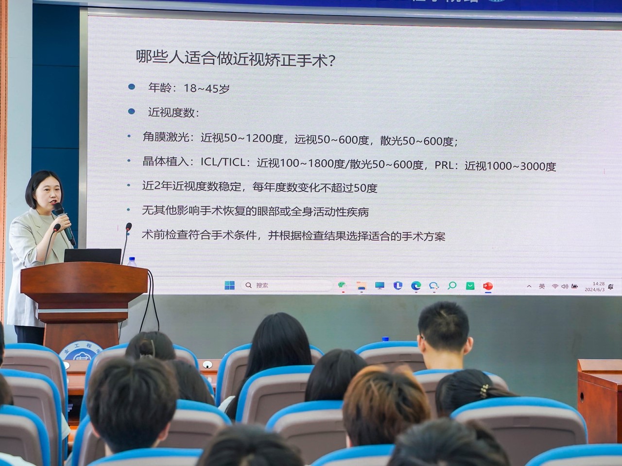 在专家讲座环节,朱冉主任带来了相关知识科普,与同学们共同分享探讨眼睛的奥秘,现场师生通过与徐州市第一人民医院屈光中心手术专家一对一的交流,帮助同学们更好地认识眼睛的结构,同时,也科普了在学习生活中健康用眼的方法,让同学们受益匪浅。