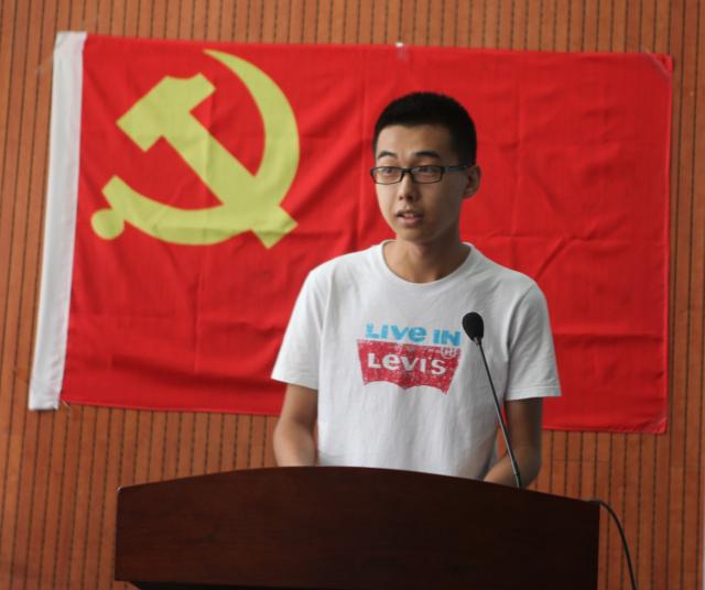 下午3:30,活动在庄严的《国际歌》声中正式开始。全体党员起立并面对党旗进行入党宣誓。宣誓仪式后,来自2013级的刘煜君和2012级的付艳晴分别作为新党员和老党员代表与在座的党员分享了自己的成长历程,畅谈了作为学生党员如何在学习、生活和工作中在同学中发挥示范作用。