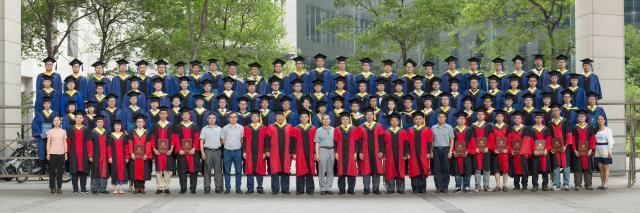 党委书记章毛平、副书记钱雄、副院长朱晓东、工程中心副主任周劲锋和研究生导师王德明教授、林柏泉教授、李增华教授、蒋曙光教授、刘贞堂教授、朱国庆教授、李忠辉教授与全体毕业研究生合影留念。