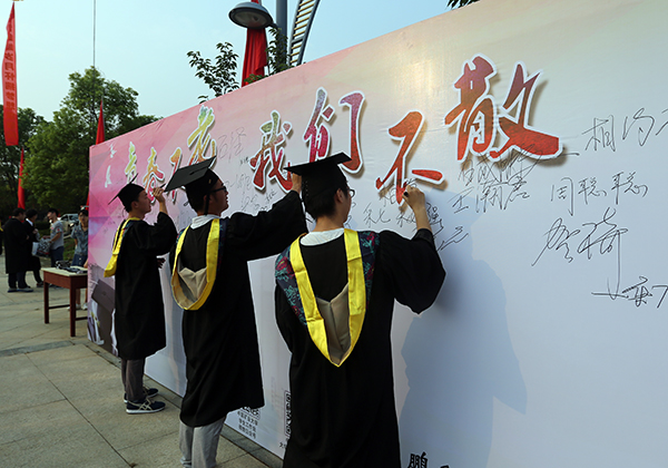 师生演唱的《中国矿大我的家》将典礼现场气氛又一次推向高潮,温馨感人的歌词勾起了无数矿大人对母校的眷恋,传达出了每位毕业生对母校的不舍。