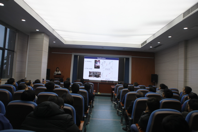 郑丽娜教授作了题为“气溶胶化学组分在线测量技术研究”的学术报告,她针对粉尘化学组分快速在线监测和仪器开发研究课题,从颗粒物富集采样技术、基于电火花发射光谱技术的气溶胶重金属元素定量分析方法、基于拉曼光谱技术的二氧化硅粉尘和碳纳米颗粒物定量分析方法等方面进行了详细的介绍,提出了研发小型化、低成本的定量分析工作场所空气中有毒有害颗粒物仪器的具体思路,展示了便携式气溶胶元素成分在线测量仪器,解决了粉尘化学成分高灵敏度和高时间分辨率监测的难题。