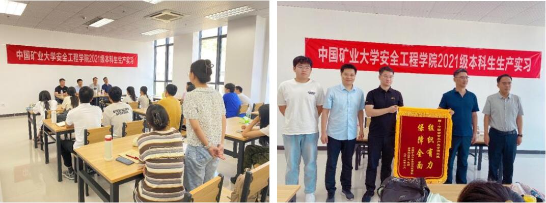 周福宝院长介绍了中国安科院及其密云基地的总体情况、主要职能和发展规划,强调了当前形势下安全应急与职业健康事业发展的重要性,勉励同学们要心怀国家,在专业领域持续深造学习,提升自己的专业知识水平,努力为实现国家“科技兴安”的目标作贡献。同时,也详细解答了同学们在学业和择业上的困惑。实习师生对中国安科院的精心组织表达了感谢,并赠送了“组织有力,保障全面”的锦旗。