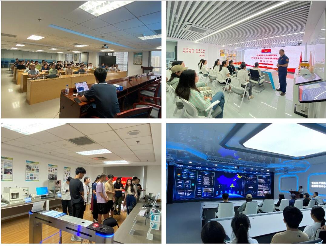 在中国安科院安全大厦,实习教学团队带领同学们参观了边坡雷达创新团队、职业危害研究所、安全生产风险监测预警中心等科研部门,深切感受中国安科院在安全生产和应急管理领域的科技创新活力,充分激发了同学们投身安全应急科技工作的学习动力。