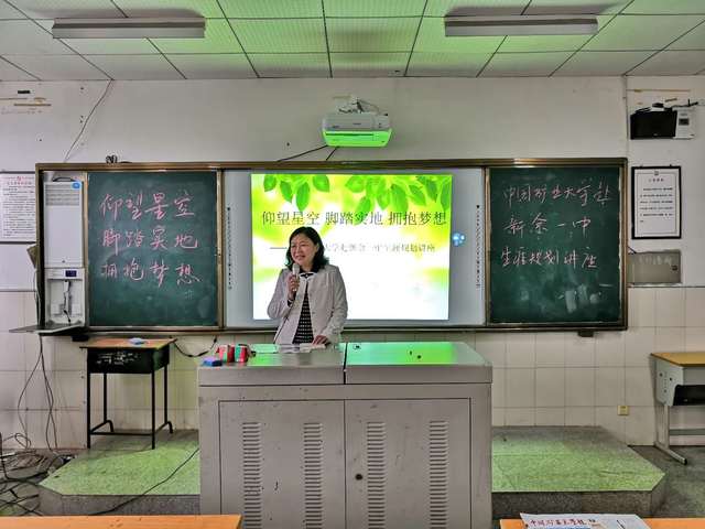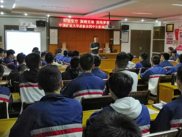 在新余一中和新余四中,郭梅香、于基伯老师首先与两所中学的领导老师们进行座谈会,介绍我校的招生政策、优势专业、就业升学情况等。在之后宣讲会中,于基伯老师以“仰望星空、脚踏实地、拥抱梦想”为题介绍了我校的基本情况,与其它高校相比的优势等内容。最后,于基伯老师结合自己的经历与经验为同学们进行了生涯规划与高考心理调整专题讲座。