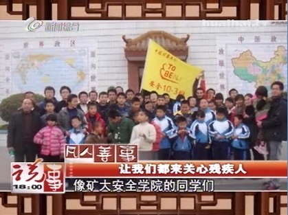 学生作为徐州地区在校大学生爱残助残的代表进行报道,不仅向徐州市民展示了矿大学子志愿服务社会的良好形象,也有利于让同学们认识到自己努力的意义所在,从而激励广大在校学生更广泛地投身到帮助残疾人的队伍中去。