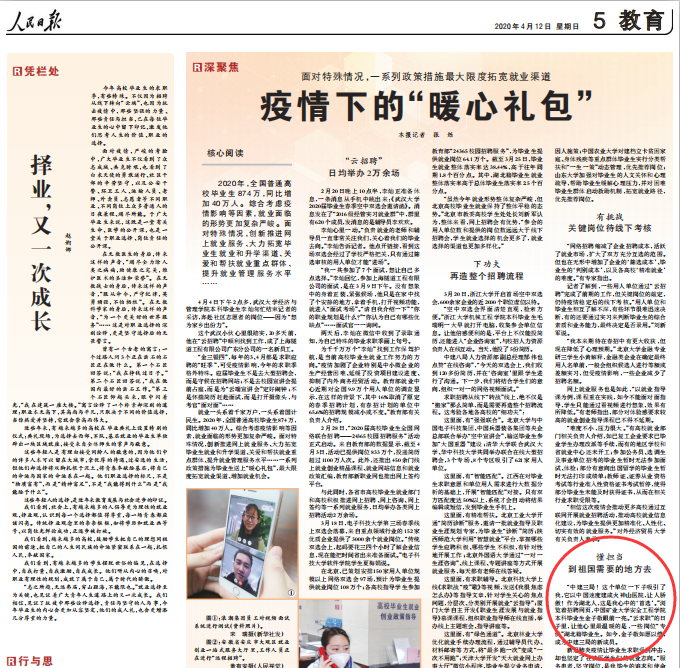 近日,《人民日报》以《疫情下的“暖心礼包”》报道全国大学生的就业情况,重点提到了新澳门六合彩预测