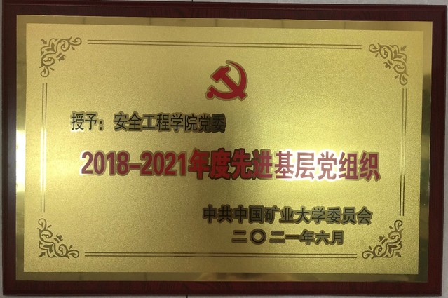 2021年度江苏省高校先进基层党组织:公共安全与消防研究所第二党支部(原矿井通风与防灭火第四党支部)