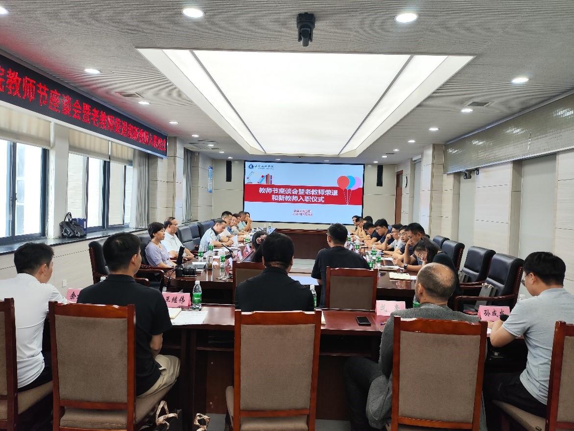 在矿科A412会议室召开庆祝第40个教师节座谈会暨退休教师荣退和新教师入职仪式。院长翟成,校党委教师工作部、人力资源部副部长龚成,副院长郭梅香,荣退教师章毛平、何书建、杨胜强、樊秀娟,以及部分教师代表、新教师参加了座谈会。座谈会由副院长郭梅香主持。