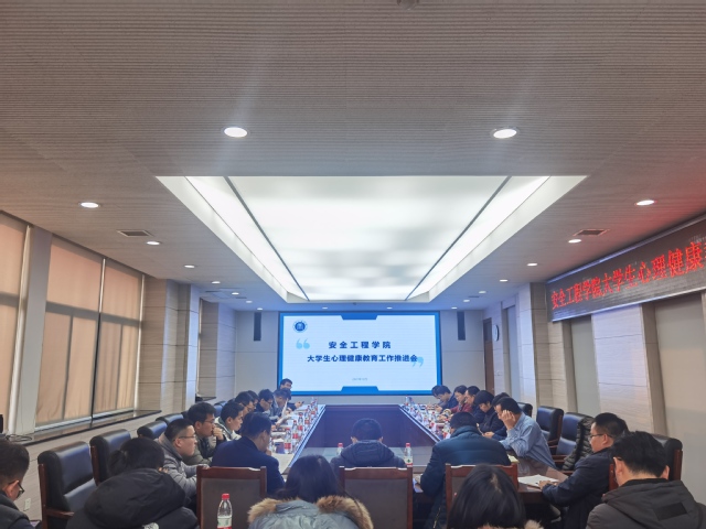 大学生心理健康教育工作推进会在矿业科学中心A412召开。院长王恩元,学工处副处长、大学生心理健康教育中心副主任范韶维,行政副院长郭梅香,副院长王亮,副院长仲晓星,部分研究生导师、各年级行政班主任、专兼职辅导员参加了会议。院党委副书记孙留涛主持会议。