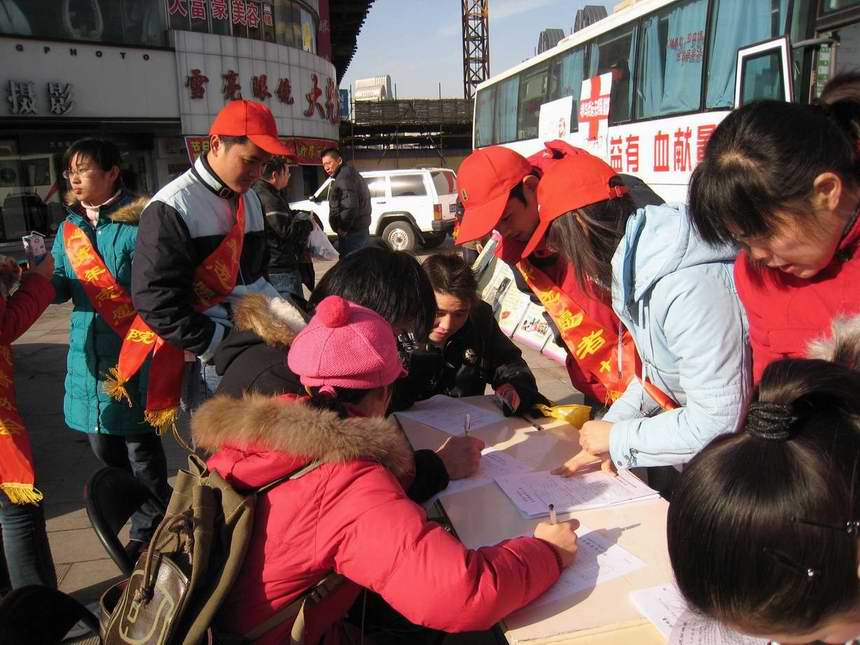 在活动现场,该班级全体成员向行人展示了自制的宣传海报,高挂起“参与奥运,无偿献血”的横幅。班级的各位成员踊跃地向路人分发宣传单并对行人进行献血知识的讲解。班长章东升同学带头献血400毫升,很多行人也都纷纷响应,一共有14人参加了此次无偿献血活动,献血量达3000毫升。