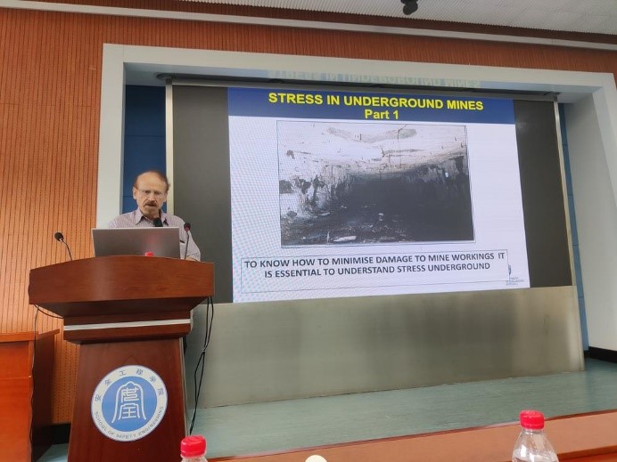 师生做了题为“Stress In Underground Mines & Geotechnical Instrumentation”学术报告,副院长王亮教授主持了学术报告会,学术报告主要介绍了他团队在地应力分析测试的研究成果,内容涉及地应力测量与分布规律、地应力分布对岩土工程影响、复合多层岩体地应力分析与数值模拟实施等多个方面内容,我校相关专业教师及研究生80余人参加了本次报告会,与会成员围绕报告内容与Jan Anton Nemcik 研究员进行了热烈讨论。