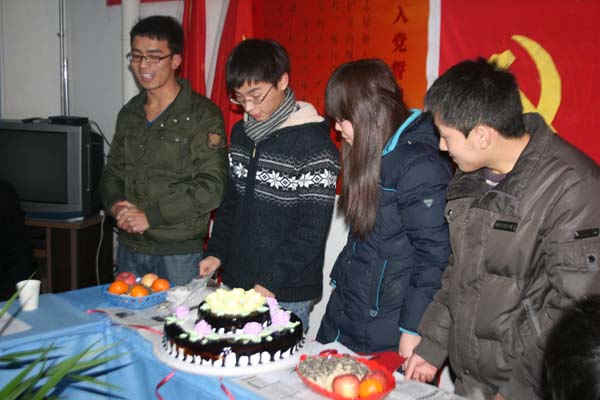 参加活动的各党支部分别展示了以庆祝“政治生日”为内容的对联,表达了对过政治生日党员的祝福。安全09-2班党支部为过生日的党员精心准备了生日蛋糕。党员切蛋糕时,全体与会党员共同演唱了《唱支山歌给党听》,作为庆祝生日的歌曲。钱雄副书记向过“政治生日”的4名学生党员赠送了一份特别的礼物——章毛平书记和钱雄副书记亲笔题字的《雷锋画传》。随后,过政治生日的4名党员“围绕当初入党为什么,现在为党做了什么,将来给党留下什么”,结合本人近年来的思想、学习、工作情况谈了入党感言,明确今后努力的方向。