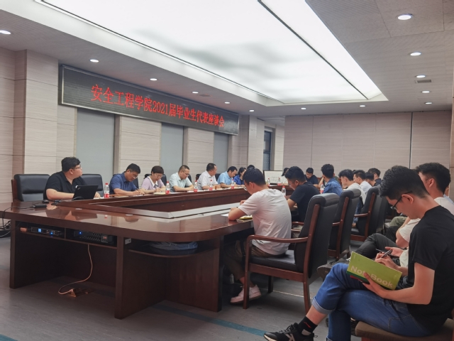 在矿业科学中心A412举行2021届毕业生代表座谈会。院党委书记王思华,院长王恩元,院党委副书记孙留涛,行政副院长郭梅香,副院长王亮,副院长仲晓星,17级6班行政班主任程婷婷出席活动,17级23名毕业生代表参加座谈会。座谈会由学工办主任、团委书记刘世通主持。