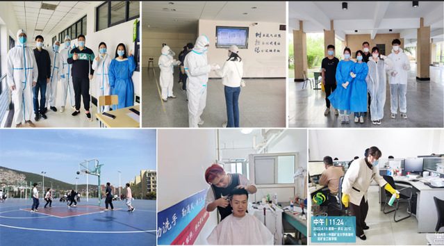1210名在校研究生、本科生的4轮全员、每天20%抽检比例的3轮常态化核酸检测工作,确保学生无一漏检,守护学生平安。此外,向学生推送疫情防控下大学生心理健康与心理疏导专题讲座,线上线下和学生交流沟通,通过拔河比赛、接力赛、篮球赛以及小型音乐会、放风筝等形式丰富同学们的校园生活,缓解和疏导学生心理压力。