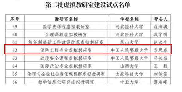 消防工程专业作为成员单位参与“消防工程专业虚拟教研室”。