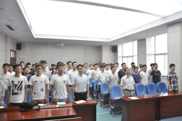 6月20日上午九点半,会议正式召开。在高亢的国际歌伴奏下,全体党员面对党旗,由毕业生党员代表崔捷领读誓词。安全13-5班张宏民、安全15-2班郑思文分别作为毕业生党员代表和新党员代表发言,讲述了自己在党的领导下,如何在学习和生活中践行党的要求,并使得自己变得更加优秀的历程。院团委书记孙婷老师向毕业生党员宣读了校党委组织部的《致2017届毕业生党员的一封信》。